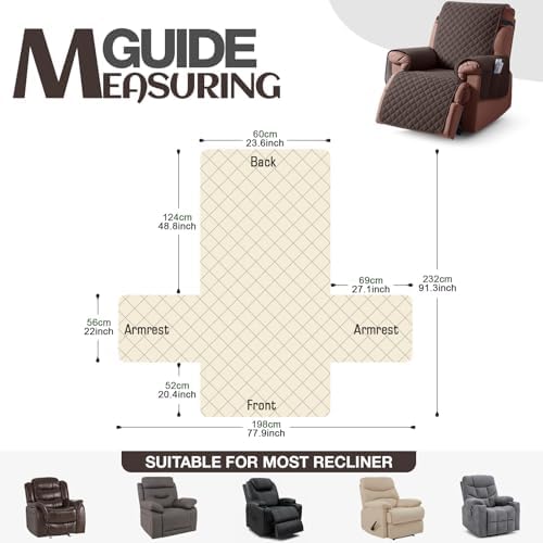 Our recliner chair cover is specifically designed to fit individual recliners with a width of 23.6”. Before purchasing, be sure to measure your chair to ensure a perfect fit. Follow our instructions for easy compatibility with your unique furniture.